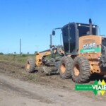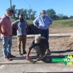 Al regreso a la planta urbana, la comitiva se detuvo en el camino vecinal que une nuestra ciudad con Tabossi, (ruta vieja) donde con maquinaria pesada se realizaba mantenimiento y reacondicionamiento de suelo para proporcionar una mejor transitabilidad de aquellos conductores que utilizan esa arteria cotidianamente y se dirigieron a calle Chubut donde se desarrollaba el desmolde de uno de los paños de la obra de pavimento para tránsito pesado bajo convenio público-privado con la firma Stertz, que según lo planificado, será hormigoneado en estas horas.
