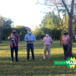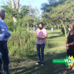 La recorrida inició en el Loteo Jardín de Viale, del barrio Centenario, donde continuando con las acciones establecidas en el convenio público-privado con el con el empresario y Cdor. Fernando Huck, el personal municipal se encontraba en calle “Los Eucaliptos” y calle pública del lugar donde se finalizó la construcción de badenes y se inició el tomado de junta de los mismos y el relleno de curvas y cordones del sector.