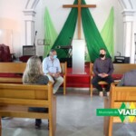 [02-08-2021] En conmemoración por los 115 años de nuestra localidad, el presidente municipal Dr. Carlos Weiss acompañado por el secretario de Gobierno Prof. Enzo Heft y la coordinadora de la subsecretaría de Cultura y Educación, Prof. Florencia Landra recorrieron las diferentes comunidades religiosas de nuestra localidad y dialogaron con sus autoridades eclesiásticas y feligreses a los fines de conocer sobre su historia desde sus inicios en Viale, sus edificios y quienes fueron sus primeros miembros.