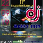 [18-09-2019] Este domingo, 22 de septiembre, desde la Secretaría de Cultura y Educación se invita se invita a todos los vialenses a ser parte de la Merry Fest. El encuentro regional de Djs N° 11 que reúne artistas de distintas localidades de Entre Ríos. La cita es a partir de las 14 horas en la plaza San Martín y la entrada es la colaboración de alimento no perecedero para la escuela pasitos al futuro N°16.