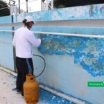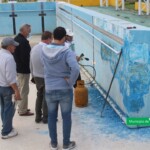 Según explicó Reula, los trabajadores se encuentran aplicando calor a la superficie interna del natatorio para ablandar la pintura y poder realizar la remoción de todas las capas añejas que se han ido acumulando a lo largo de los años.