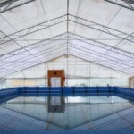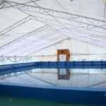 En el lugar se procedió a la colocación de las lonas que cubren el techo y los laterales del natatorio logrando de esta manera resguardarla del exterior y manteniendo la temperatura de la climatización del agua.