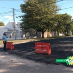 Se destaca también una tarea no menos importante como ha sido el corte de calle sobre 9 de Julio en el momento que personal de Obras Públicas ejecutaba la repavimentación de la traza vial, permitiendo así a trabajadores y las maquinarias desarrollar sus labores de manera segura y sin la intervención de otros vehículos que pudieran verse perjudicados con los materiales expuestos.